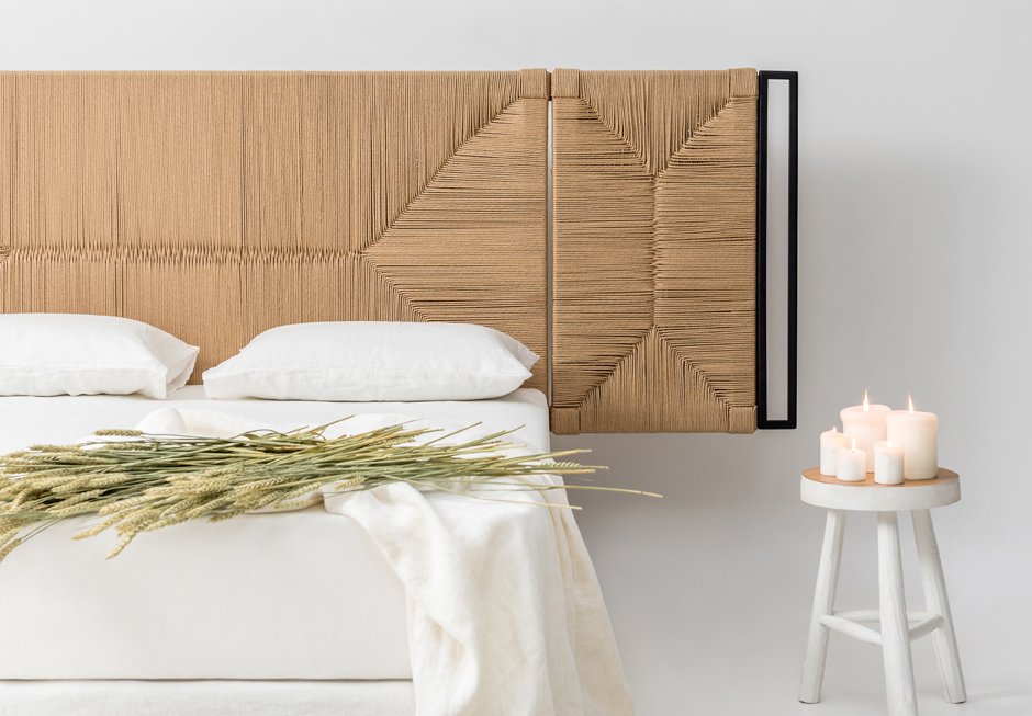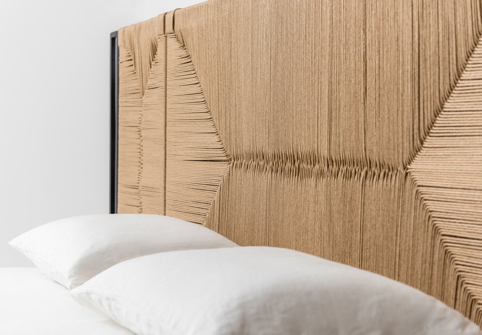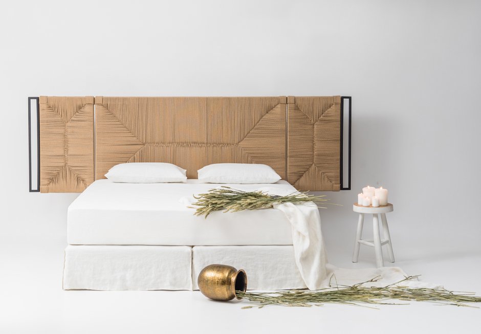 Bed dressed with removable fabric, for mattress 160×200. It has a knitted headboard with solid oak wooden detail. It is available in a variety of fabrics and colors as well as different dimensions depending on the mattress. Upon request it has storage space.