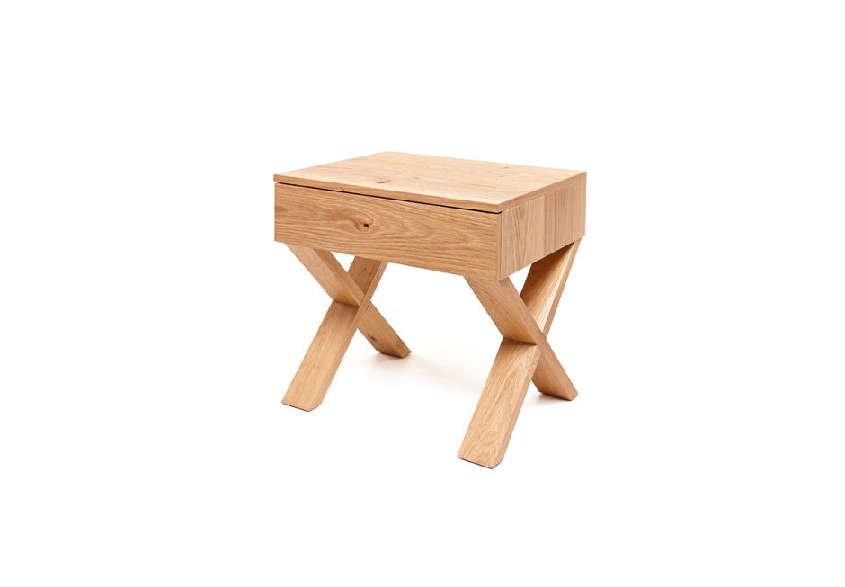 Bedside table made of solid oak with drawer for storage space in a variety of materials and colors. Available in dimensions 60x44x53h cm.