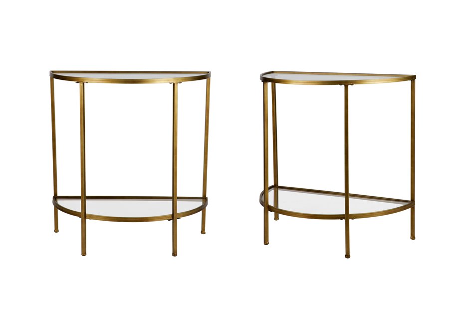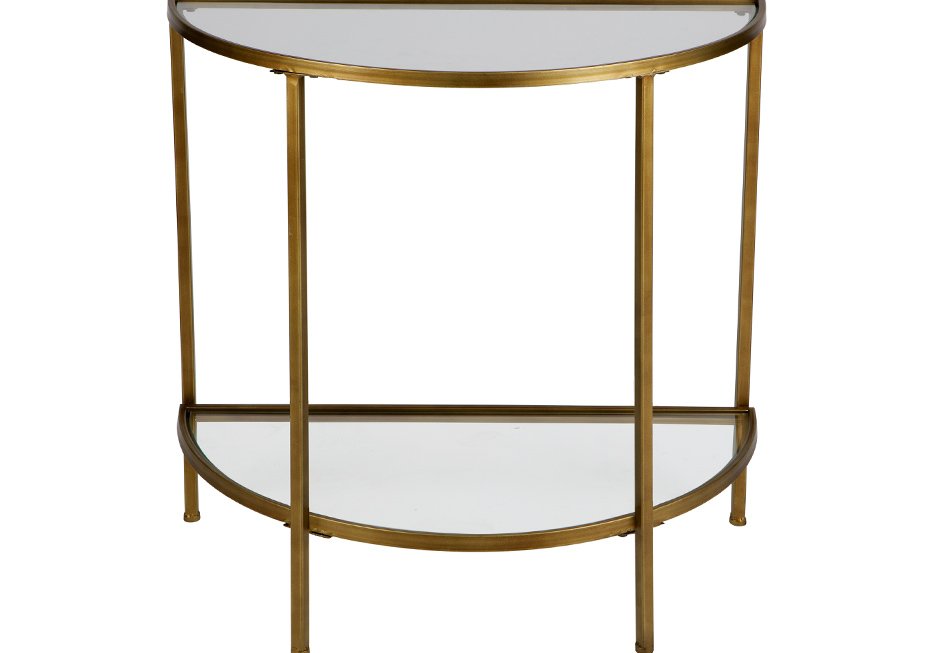 Console made of metal frame in the shade of bronze and glass surfaces. Available in dimensions: 37,5×75,5x75h cm.
