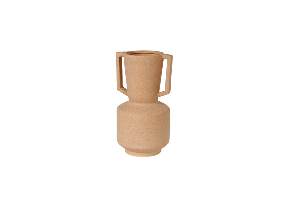 Ceramic jars in sand color and antique black color. Available in two designs with dimensions of 22.5×25.5x43h cm and 19x19x29h cm.