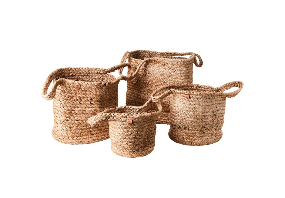 Handmade baskets (set of 4) made of jute. Available in dimensions Ø15x15h cm / Ø20x20h cm / Ø25x25h cm / Ø30x30h cm.