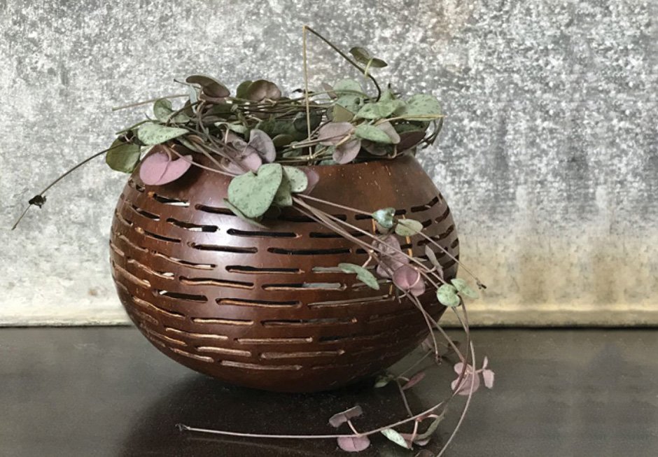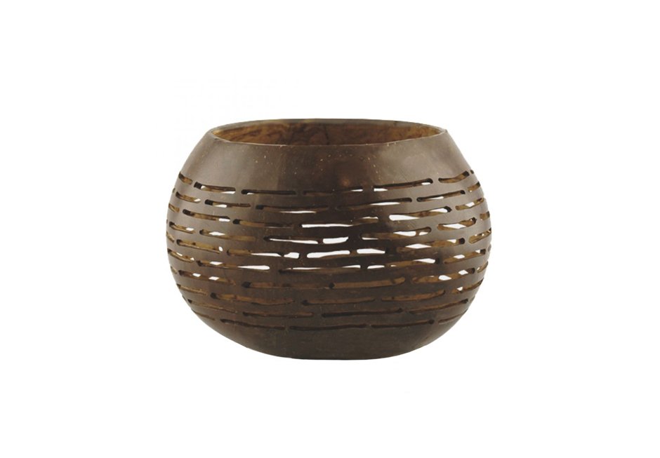 Decorative container made of coconut wood. Available in dimensions Ø13x10h cm.