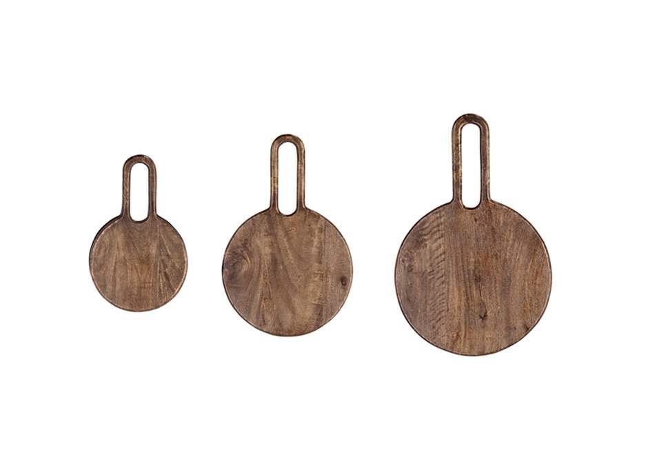 Cutting surface made of mango wood in black and brown shades.