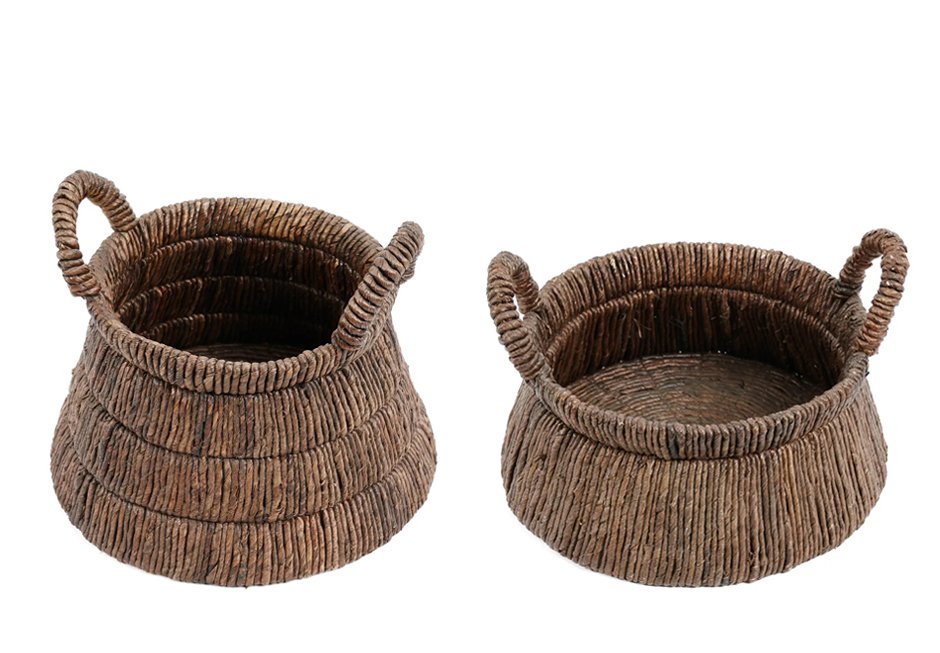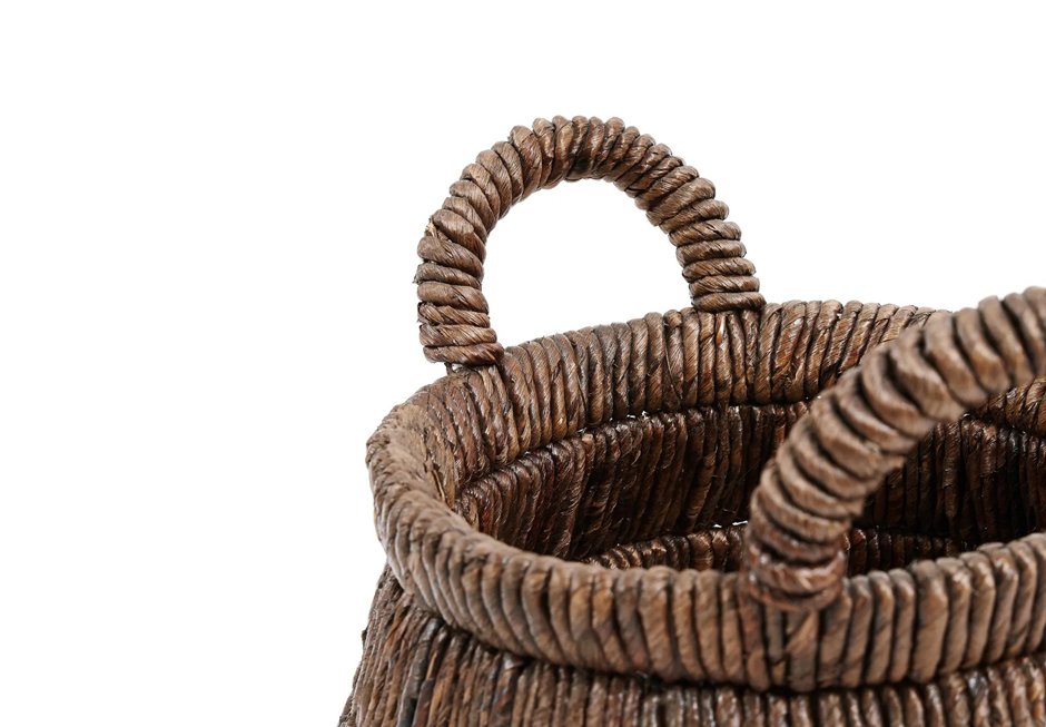 Decorative basket with handles, made of natural materials.