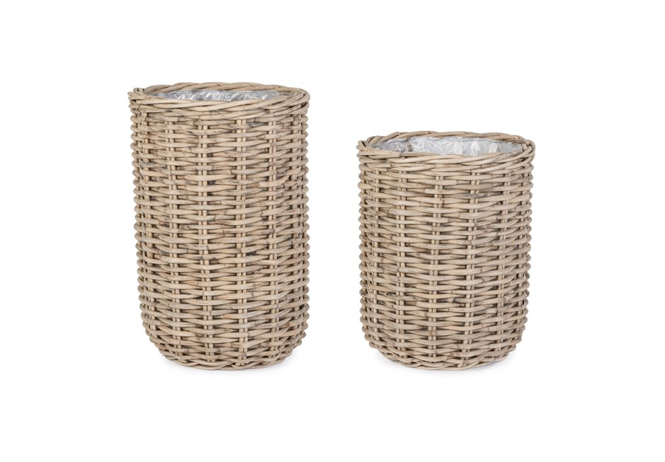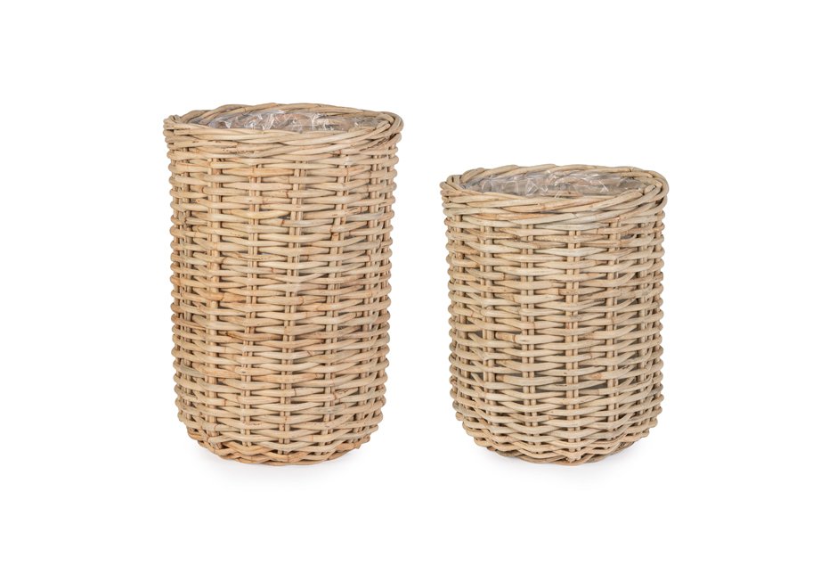Decorative baskets (set of 2) made of natural rattan material.