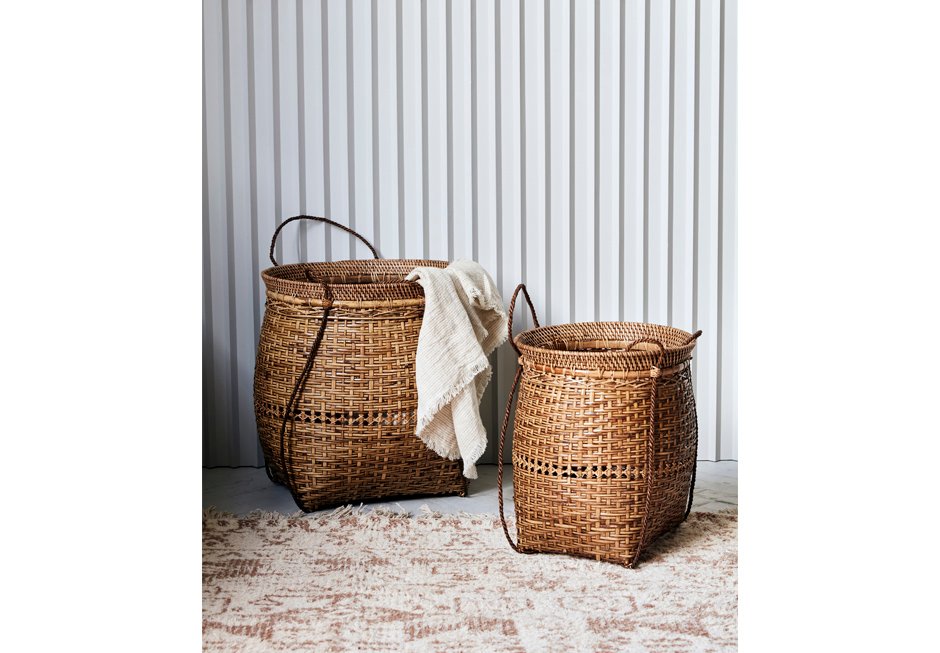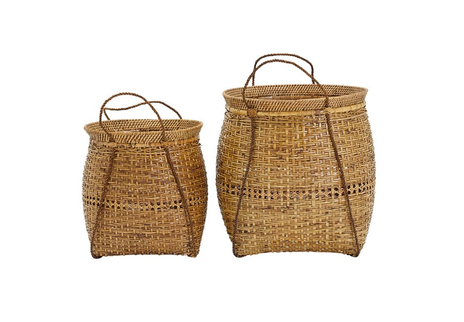 Decorative baskets made of natural materials bamboo and rattan. Available in dimensions 35x30x42h cm and 40x37x49h cm.