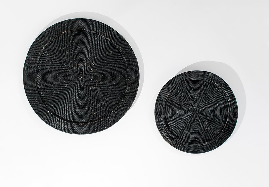 Decorative disc made of natural material in black and natural shade. Available in dimensions: Ø100, Ø70 cm.