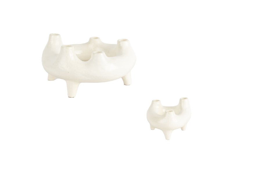 Decorative candlestick made of ceramic in a white shade. Available in: