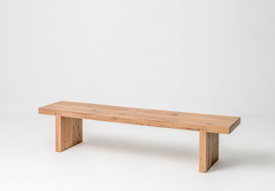 Bench made of solid oak wood. Available in dimensions: 190x40x41h cm. Upon request in a variety of dimensions and colors.