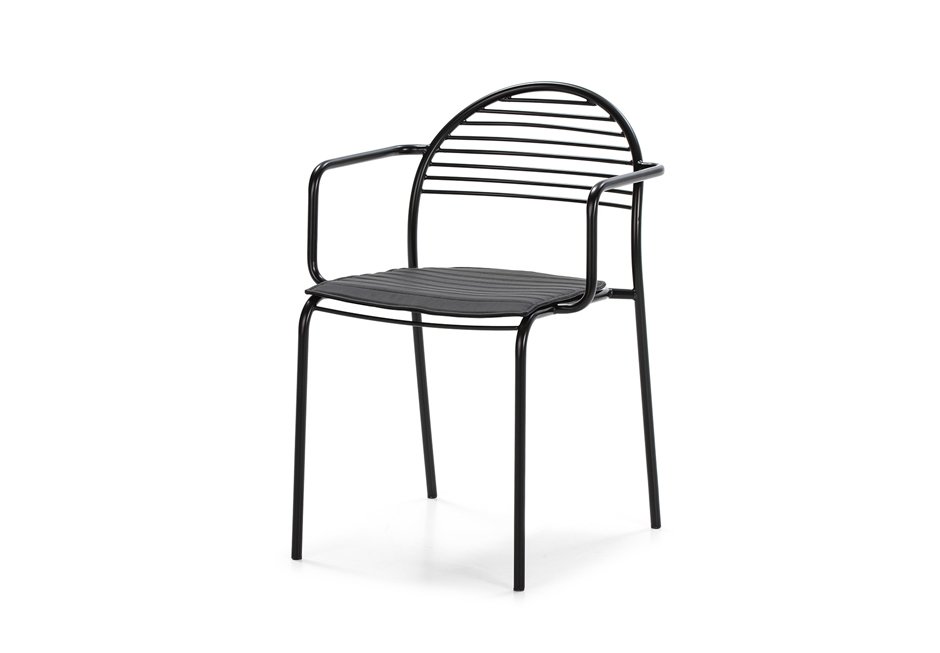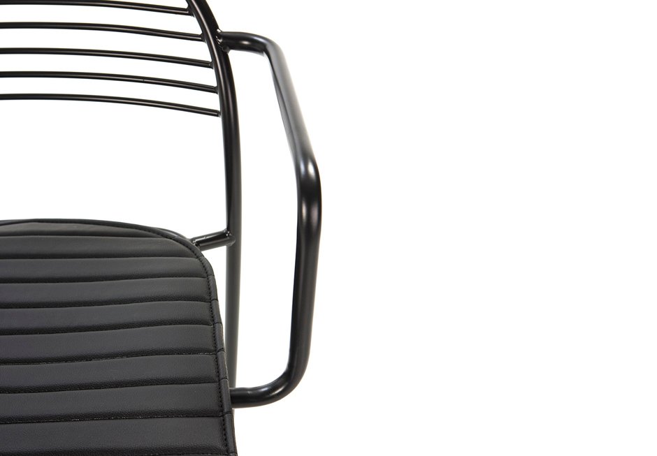 Armchair made of black metal frame and leather seat. Available in dimensions 57x55x80h cm.