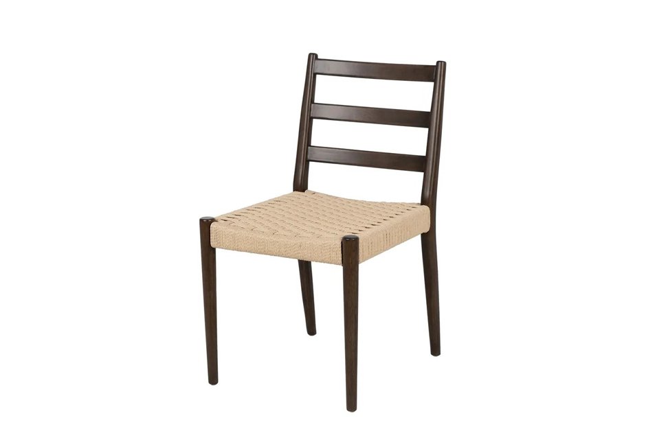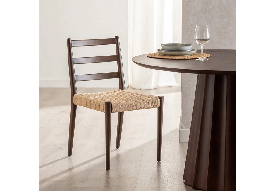 Chair with wooden rubber frame and knitted seat. Available in dimensions 44x50x80h cm and seat height 43,5h cm.
