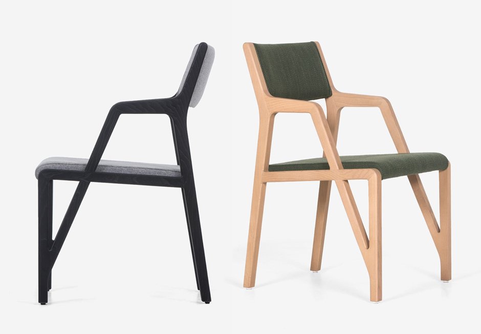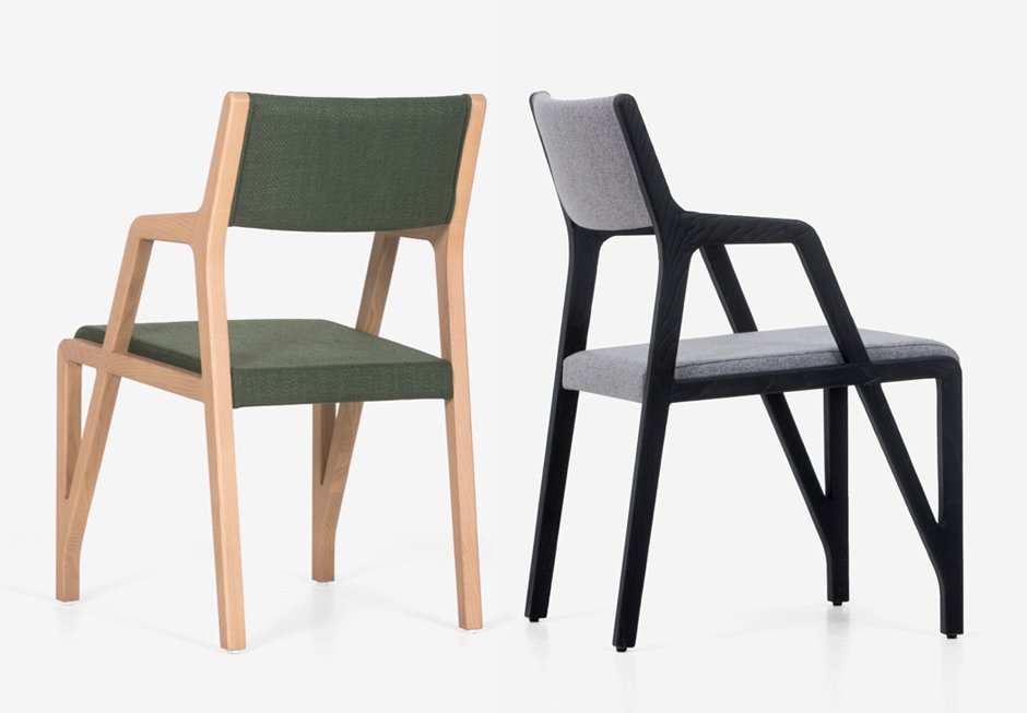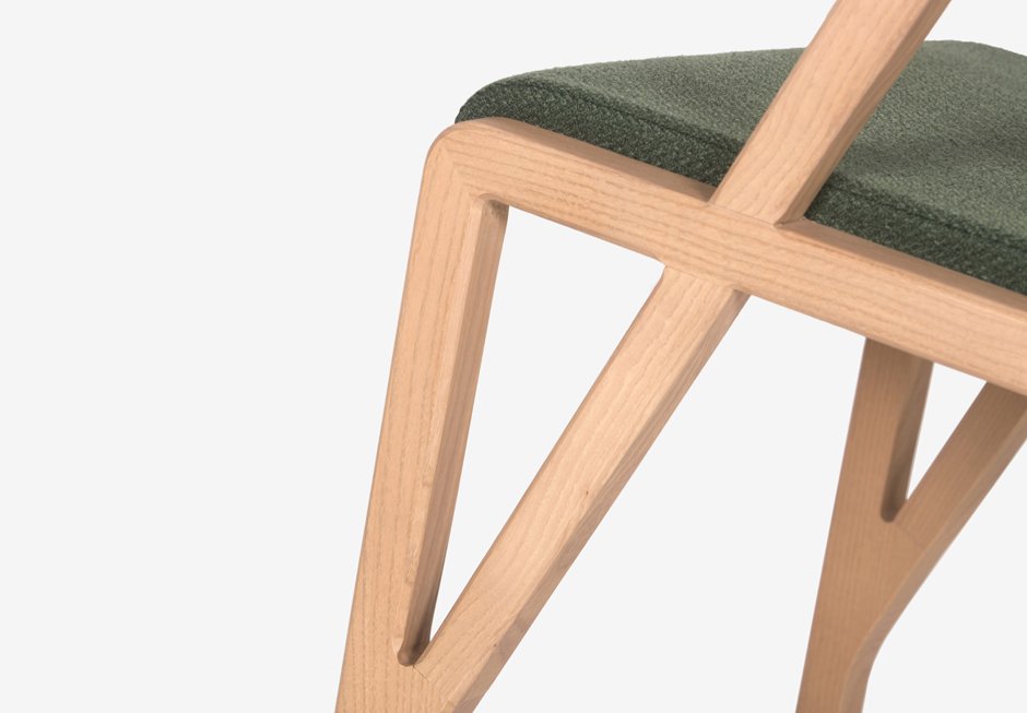Armchair with dressed seat and solid wood frame. Available in a variety of wood and fabric shades. Its general dimensions are: 53x61x85h cm.