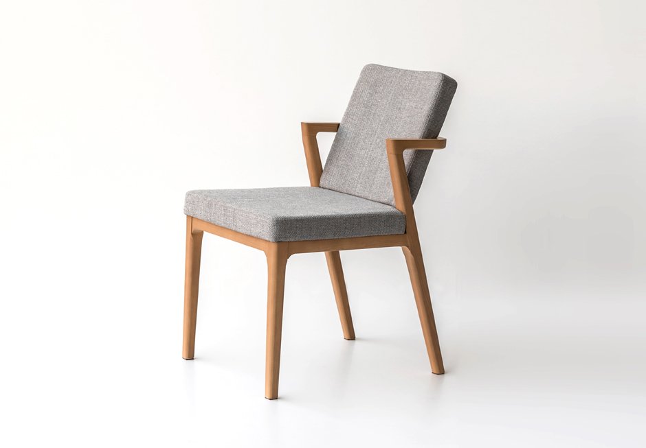 Chair made of oak frame in a variety of colors and fabrics the seat. Available in dimensions 46x50x85h cm.