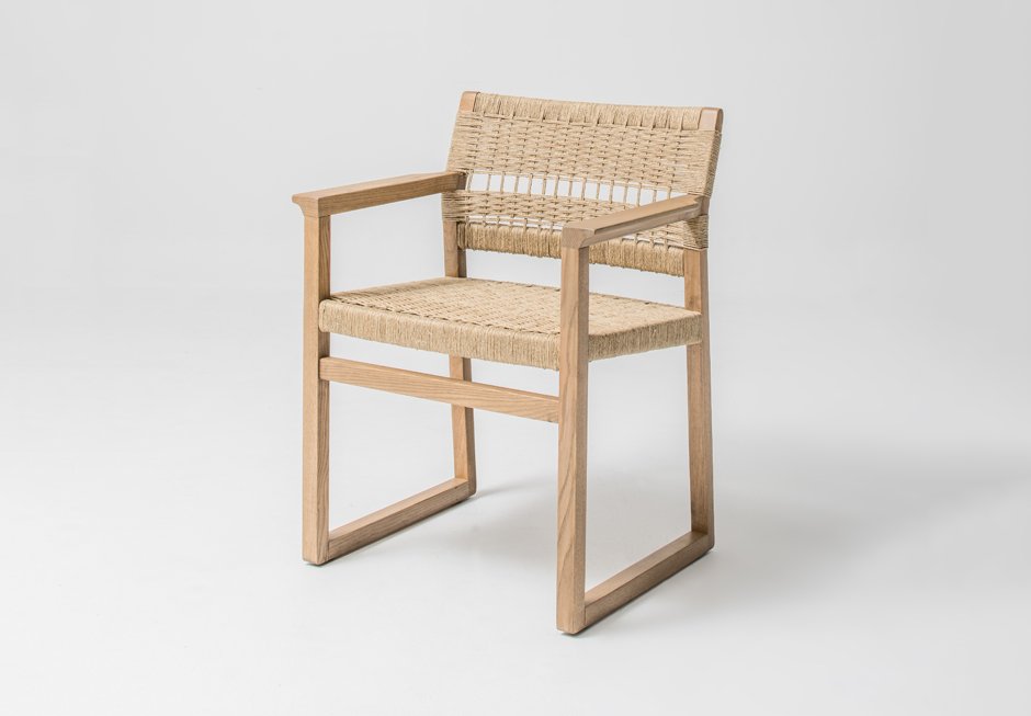 Armchair with oak frame and knitted seat. Available in dimensions 60x50x76h cm, with a variety of colors.