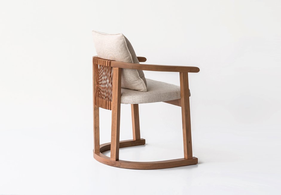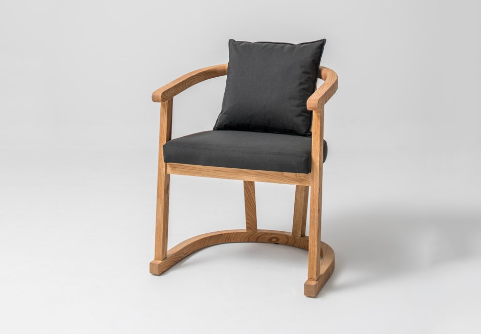 Chair made of oak frame in a variety of colors and fabrics the seat, with knit on the back. Available in dimensions 63x57x74h cm.