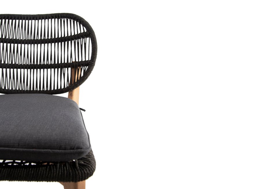 Indoor and outdoor chair with acacia wood base and metal seat with black rope knitting. Available in dimensions 55x52x82h cm.