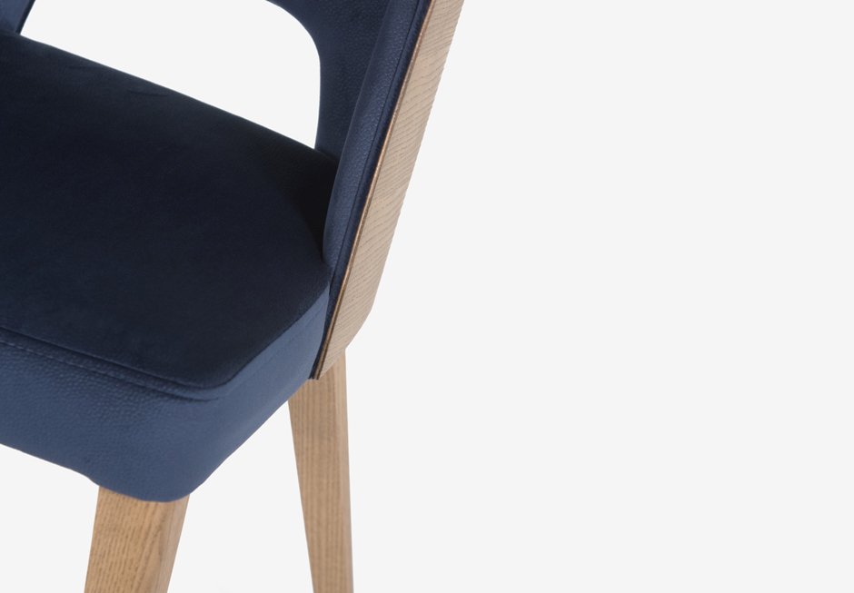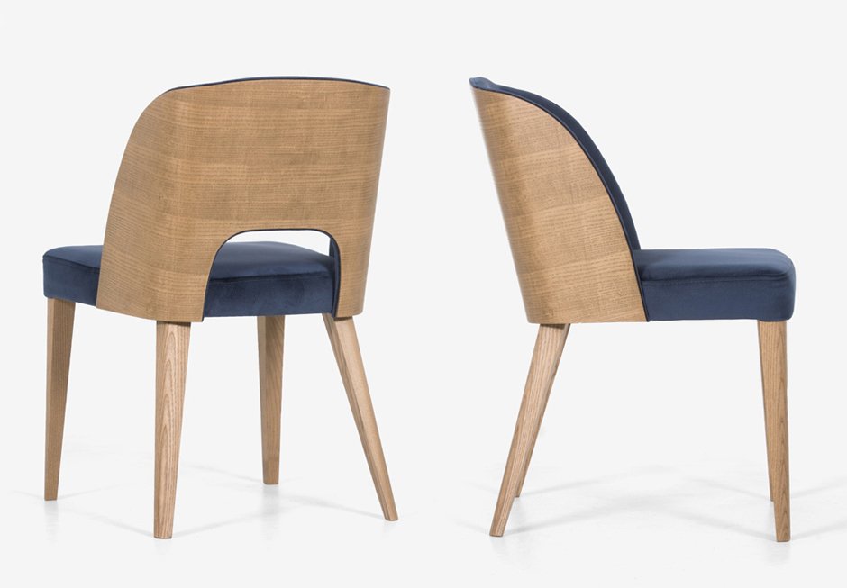Chair with dressed seat and solid wood frame. Available in a variety of wood and fabric shades. Its general dimensions are: 53x60x82h cm.