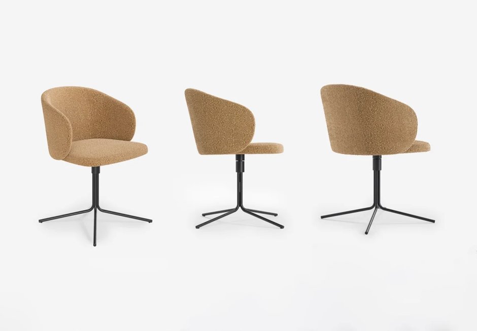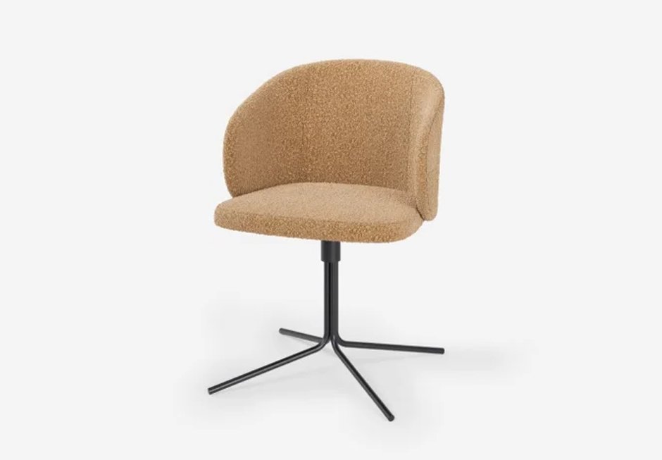 Chair with fabric seat and black metal swivel base. Available in dimensions 55x57x79h cm.
