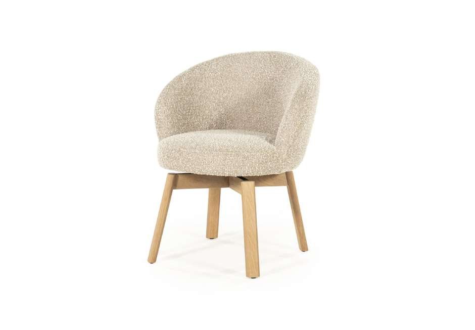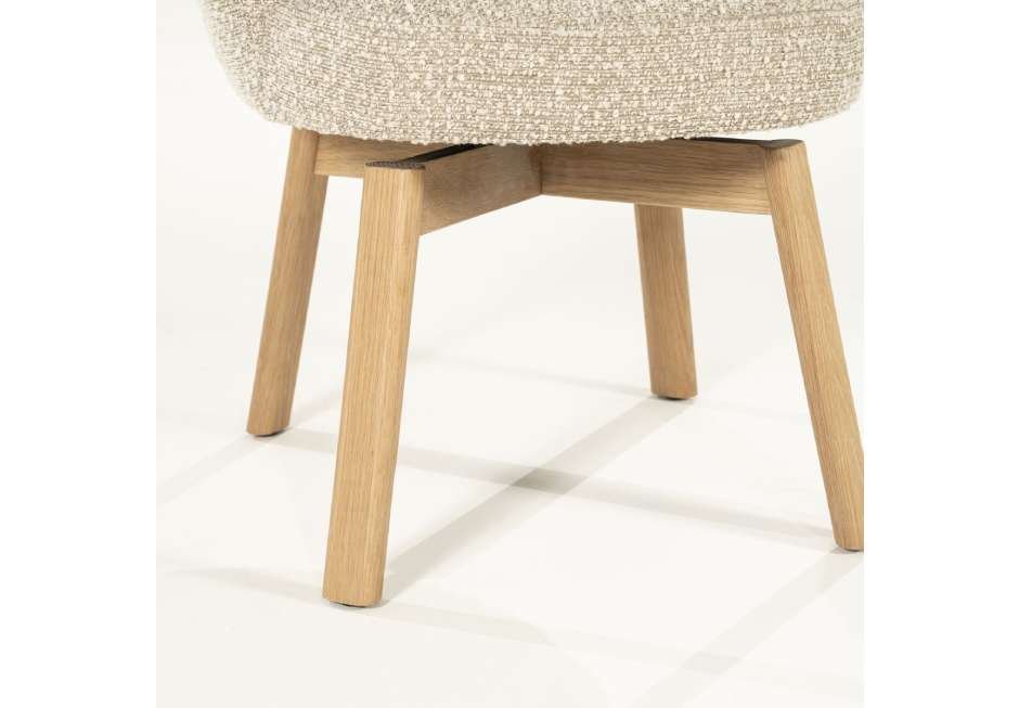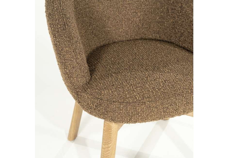 Chair made of fabric seat and frame made of oak wood in soft brown and taupe shade.