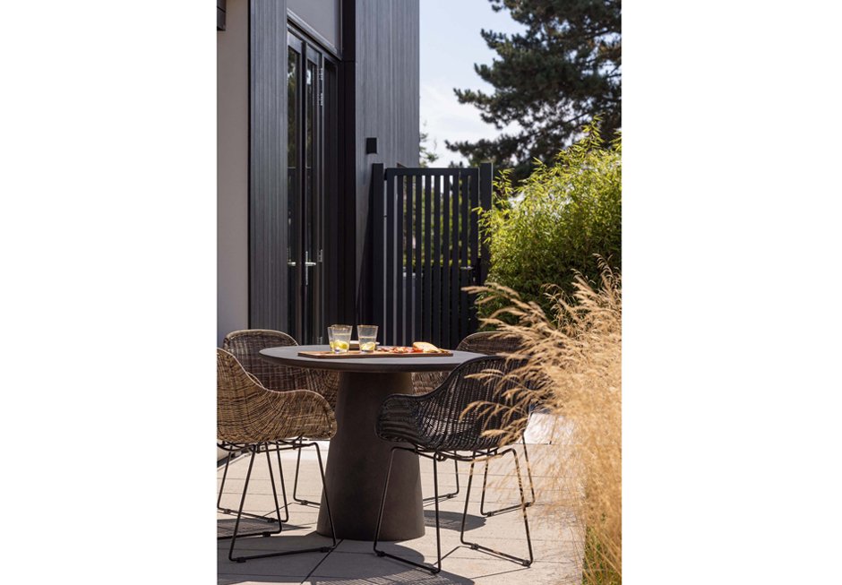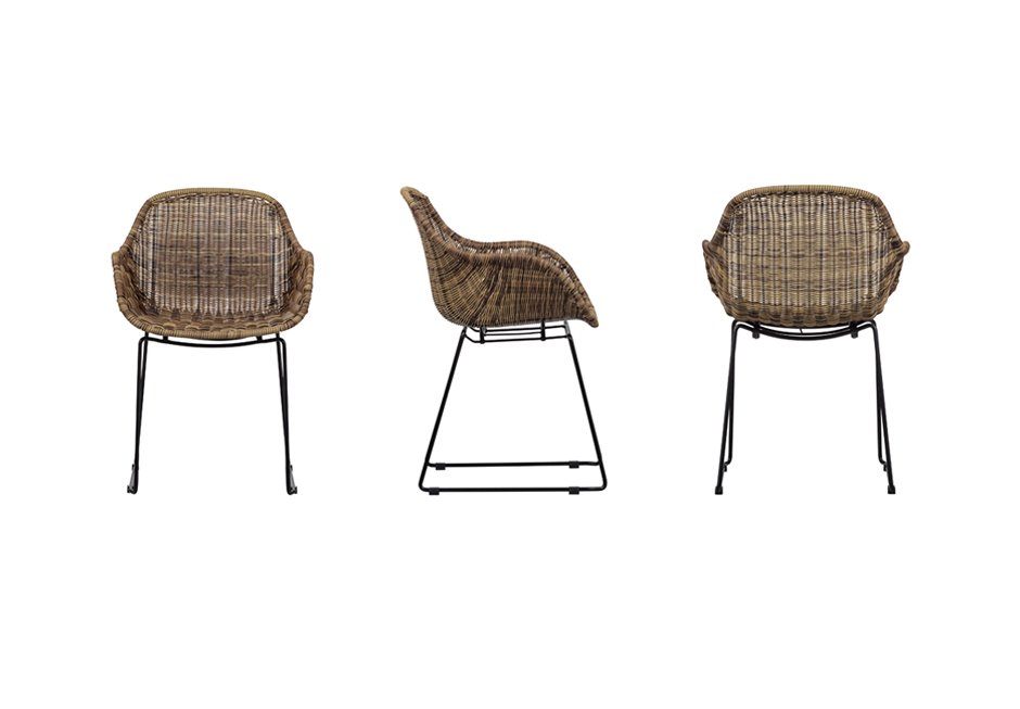 Armchair with black metal frame and rattan knit in natural shade. Available in dimensions 56x57x83h cm.