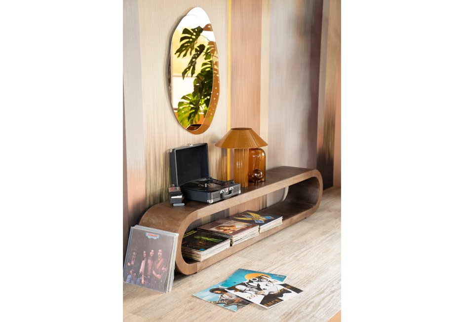TV furniture made of mango wood in brown shade. Available in dimensions: 200x30x40h cm.