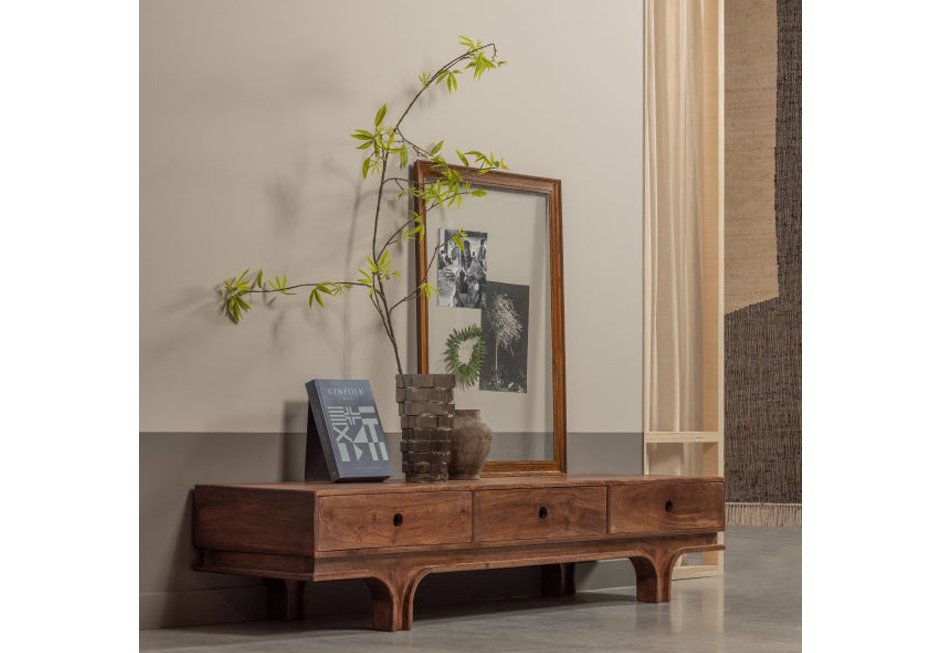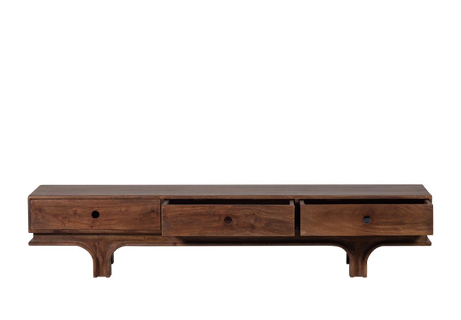 TV buffet made of mango wood in dark brown shade. Available in dimensions 180x45x37h cm.