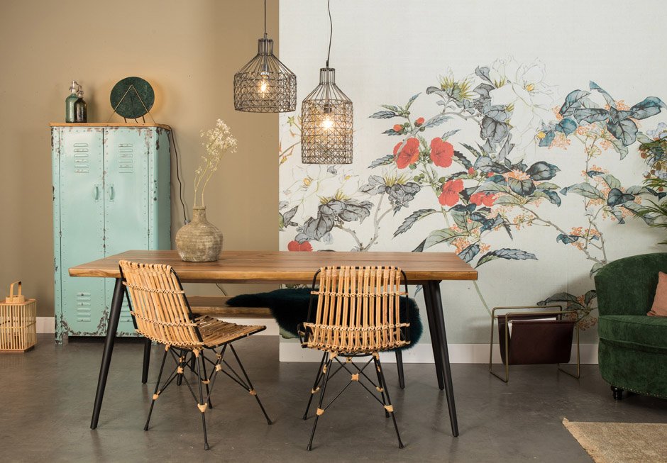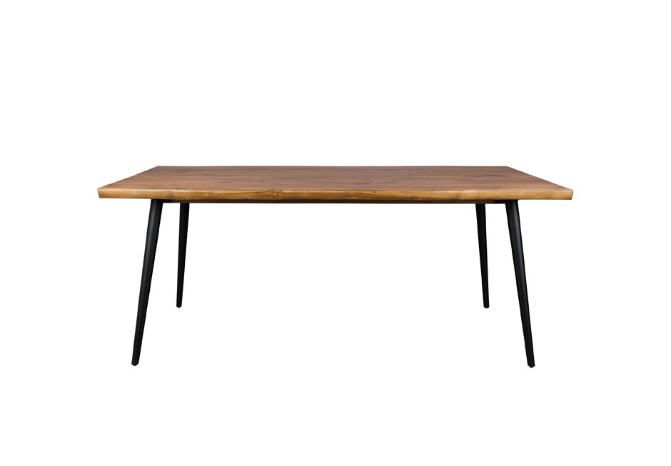Walnut table with a natural finish at the edges and metal-conical legs. Available in dimensions 160/180/200/220x90x75h cm.