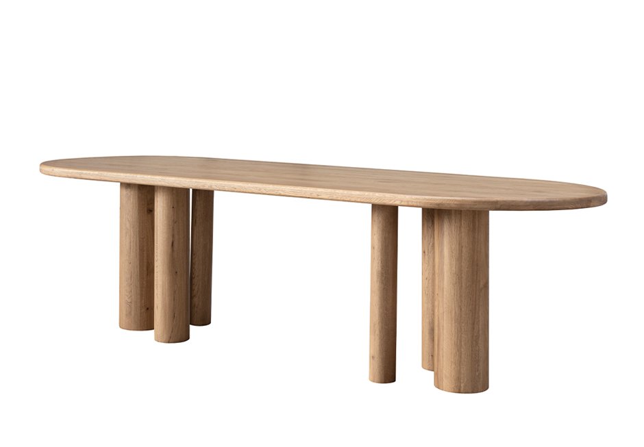 Table made of oak wood. Upon request, it is available in a variety of colors, with dimensions of 200/220/240/260/280/300x100x76h cm.