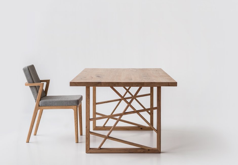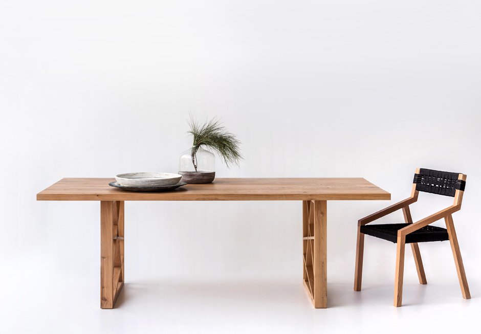 Table made of solid oak, surface and base. Available in dimensions 210x100h cm. Upon request in a variety of dimensions and colors.