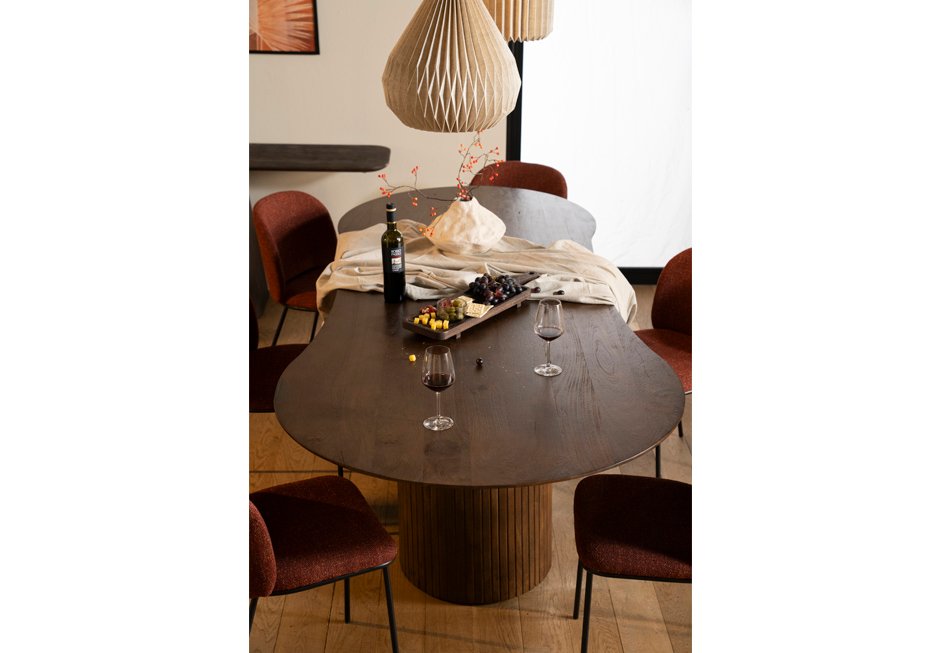 Mango wood dining table in brown shade. Available in: