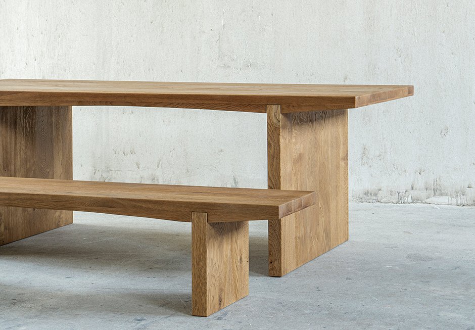 Solid oak dining table. Available in dimensions 240x100x78h cm.