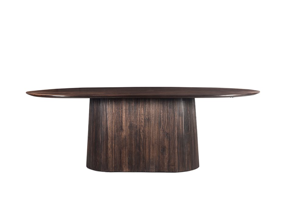 Mango wood table in light and dark shade of brown. Available in dimensions 200/230/300x110x76h cm.