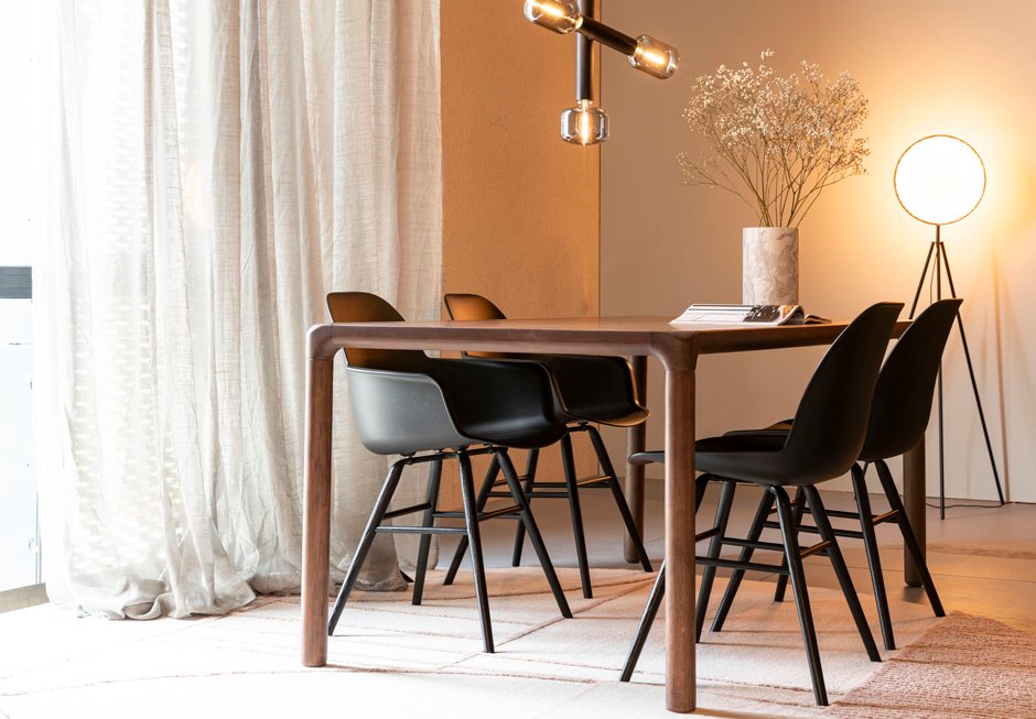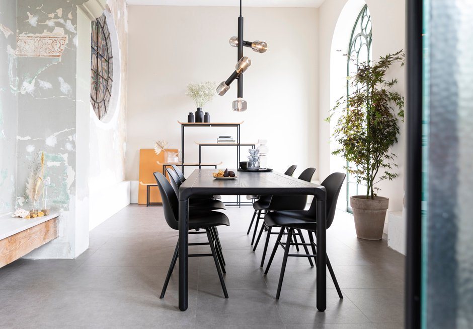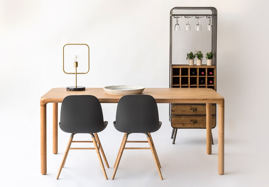 Table made of honey wood in natural and black shades and in walnut color. Available in dimensions 180/220x90x75h cm.