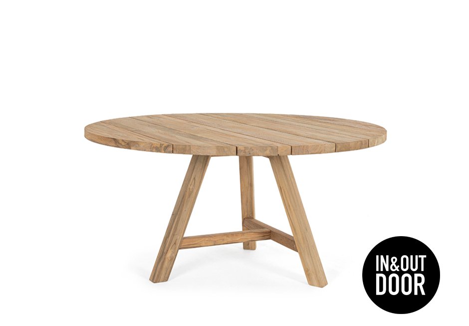 Dining table made of recycled teak wood. Available in dimensions Ø150x75h cm.