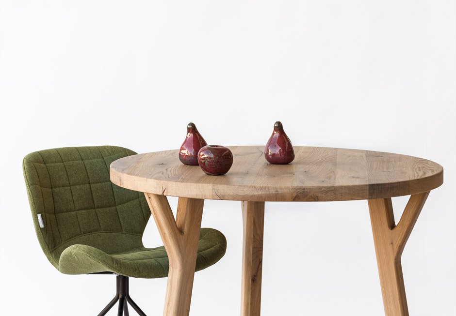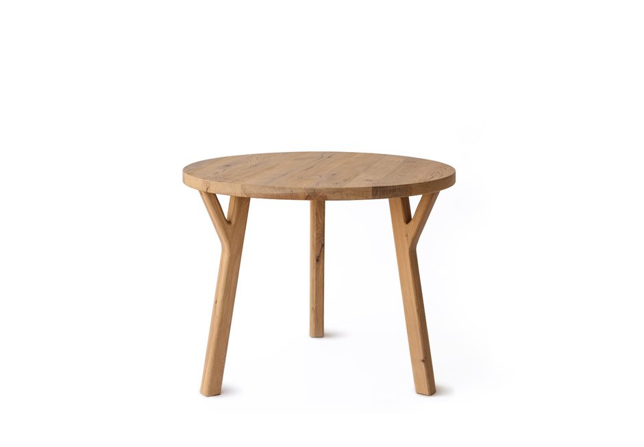 Rotunda in dimensions Ø75-120x75h cm with surface and base of solid oak. Upon request in a variety of materials and colors.