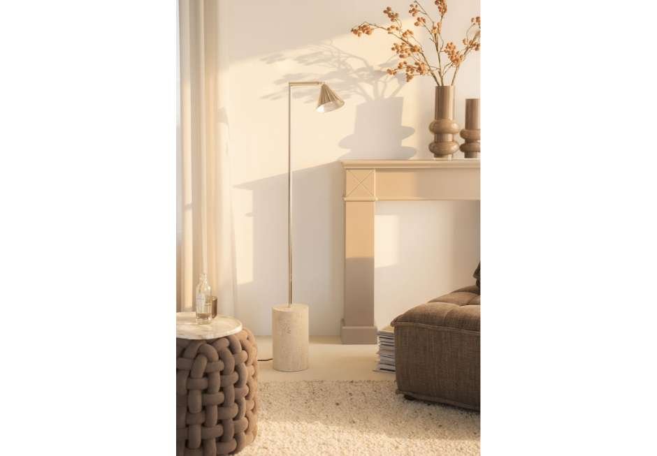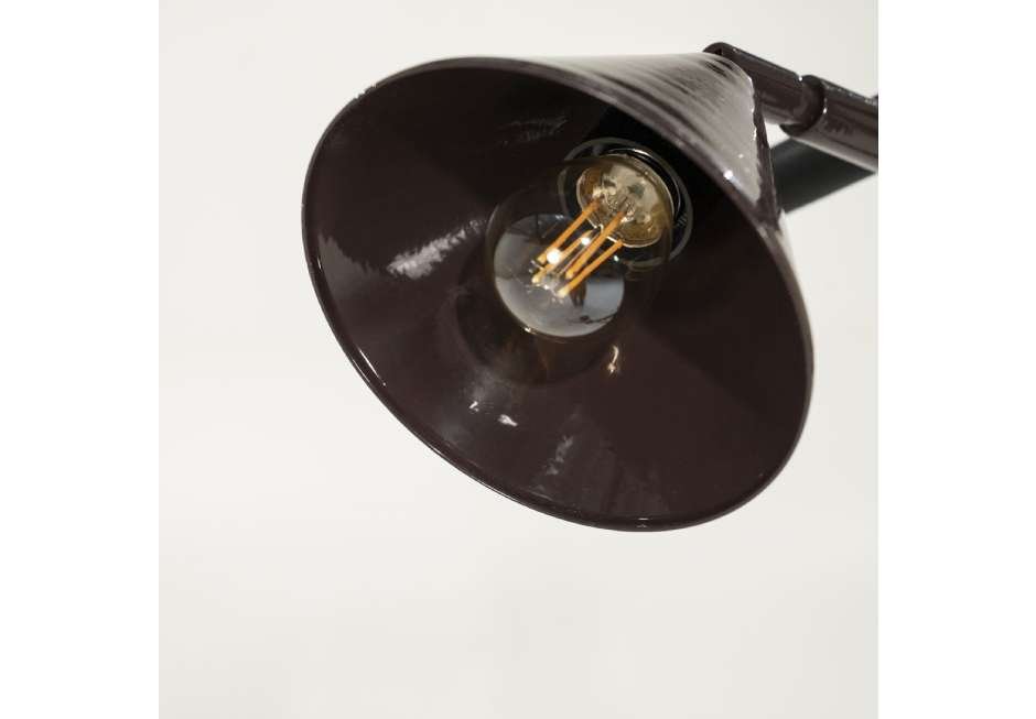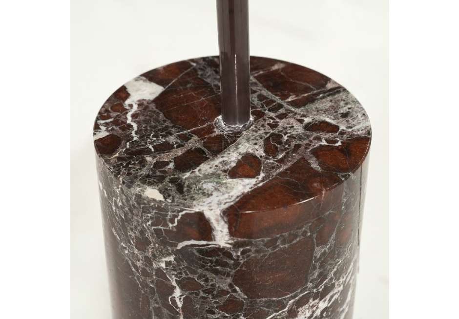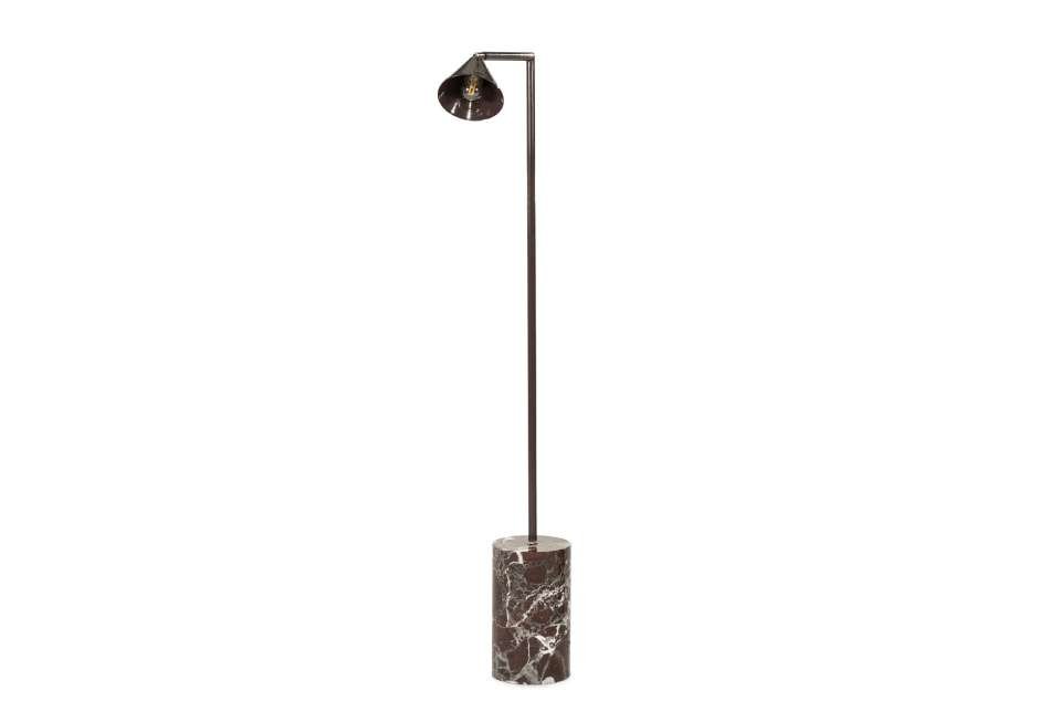 Adjustable iron lamp with marble base in brown and silver shade.