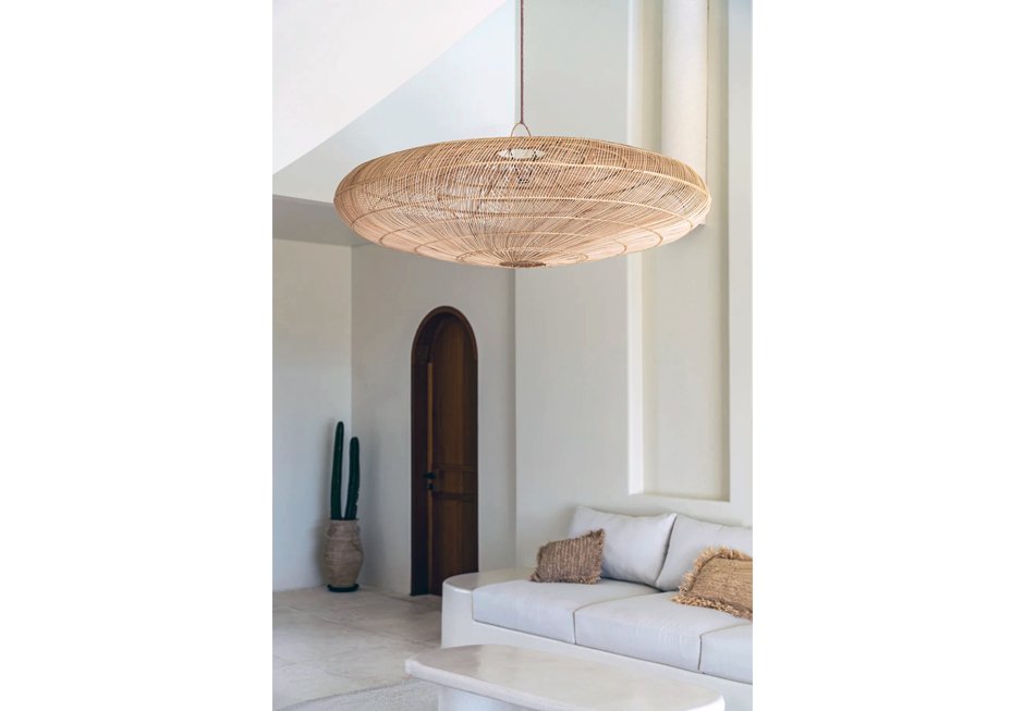Pendant lamp with weave made of natural rattan material. Available in dimensions: