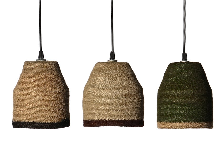 Ceiling lamp with hat made of natural jute material.