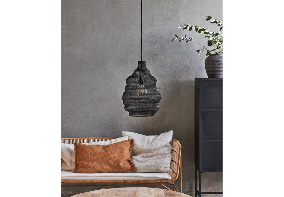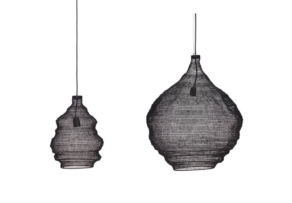 Ceiling lamp with black metal mesh. Available in dimensions: Ø30x40cm and Ø60x65cm.