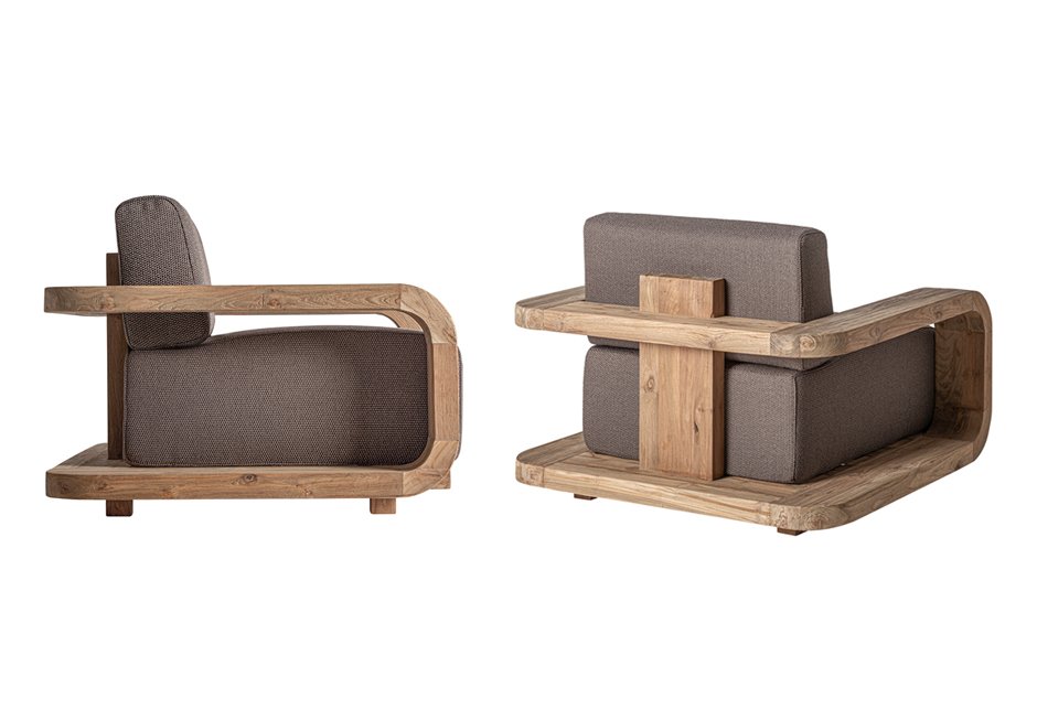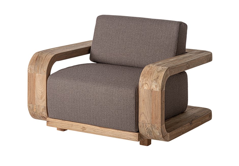 Armchair made of wooden frame and fabric seat. Available in dimensions 110x100x84h cm.