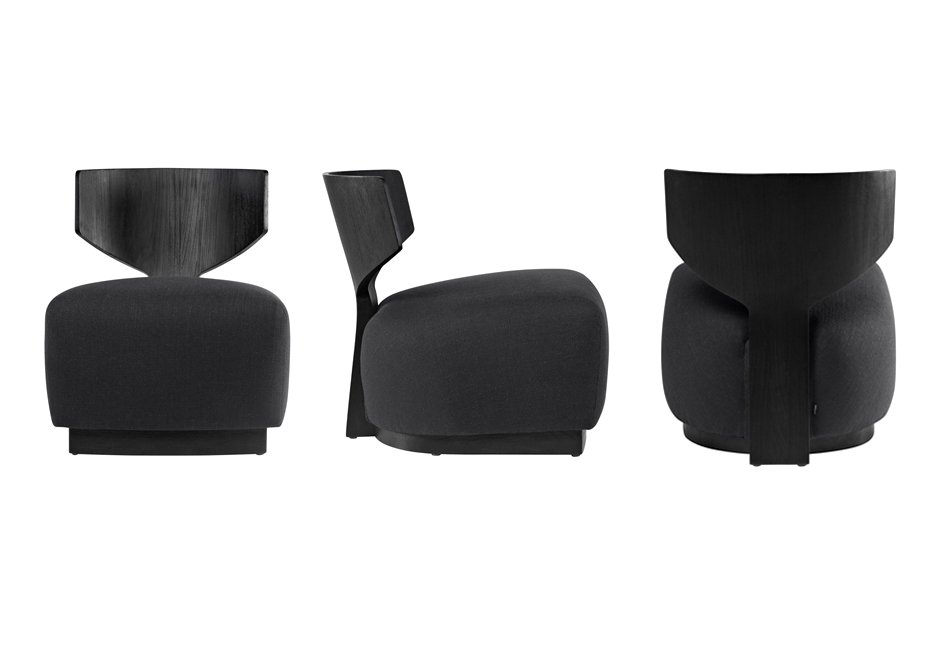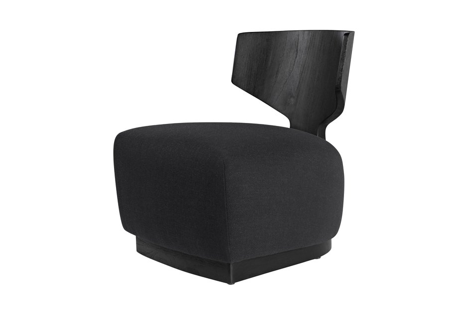 Armchair made of mindi wood and dressed seat in black. Available in dimensions 64x77x74h cm.