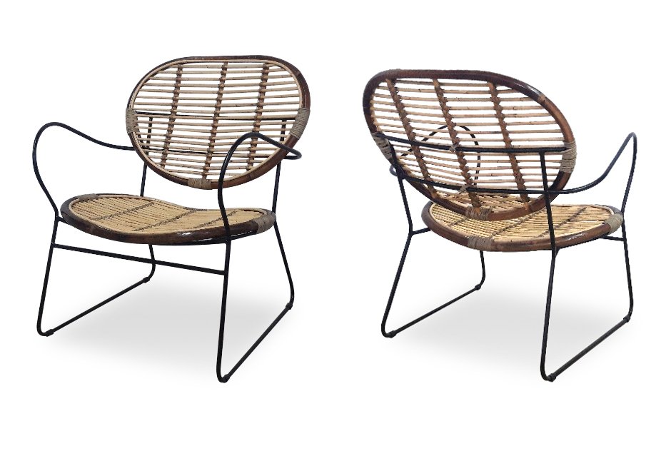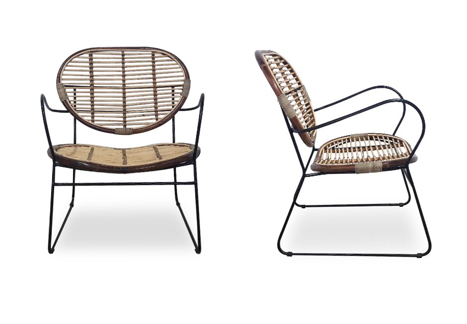 Armchair made of black metal frame and rattan. Available in dimensions: 70x65x79h cm.