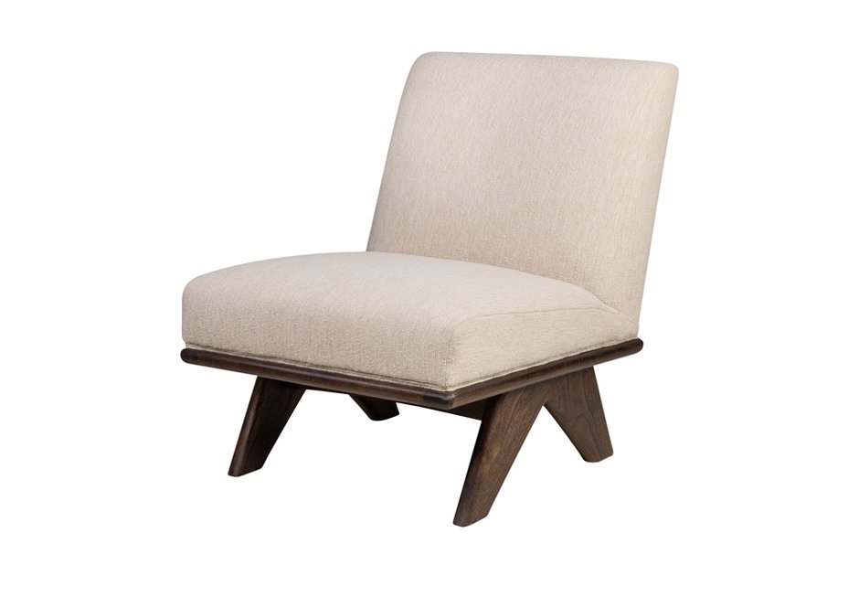 Armchair with base made of wood mindi in brown color and fabric seat. Available in dimensions 60x84x76h cm.
