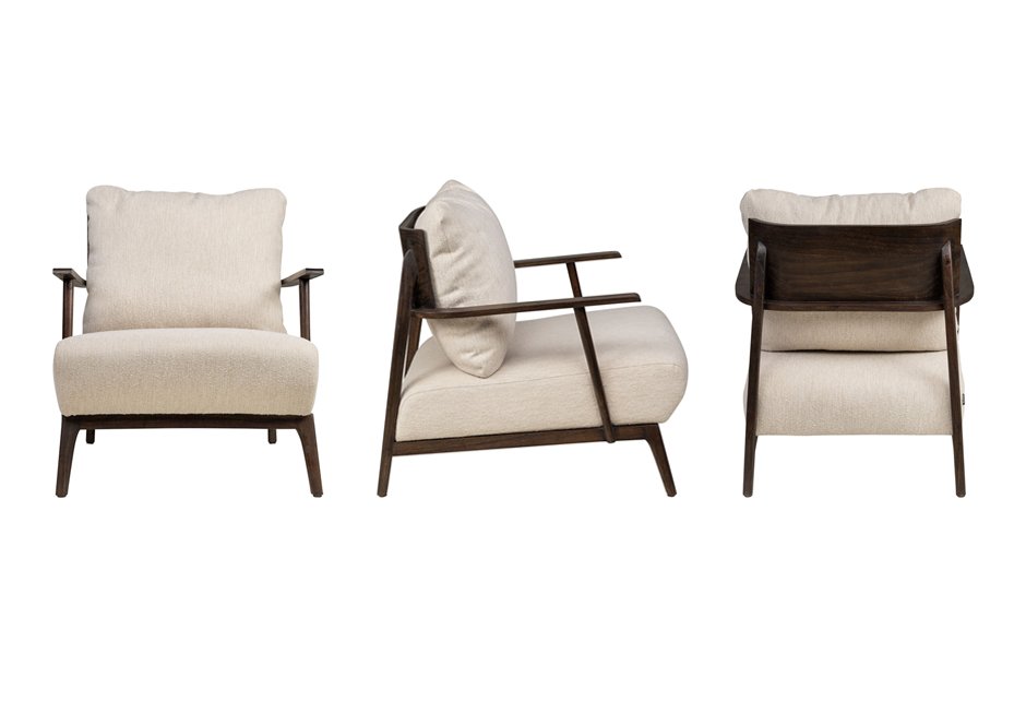 Armchair dressed, with frame made of wood mindi. Available in dimensions 72x87x76h cm.
