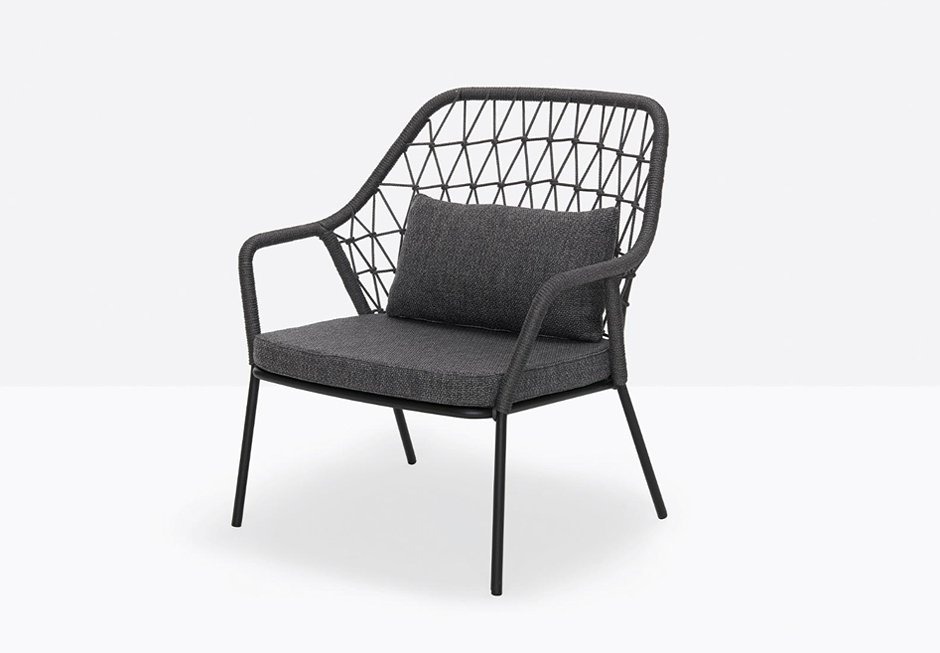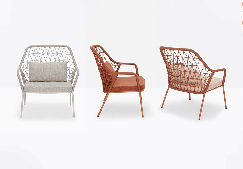 Armchair made of metal frame and knitted backrest. Available in different shades with dimensions of 80x72x87h cm.