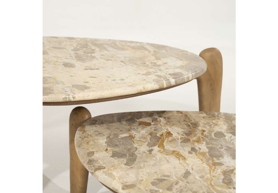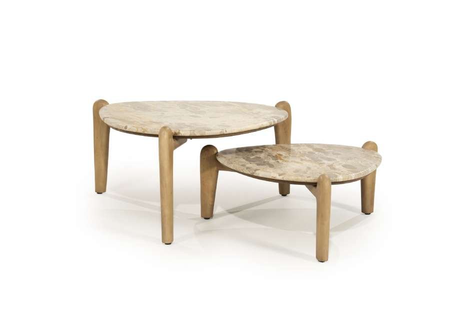Coffee table made of mango wood and marble. Available in dimensions: