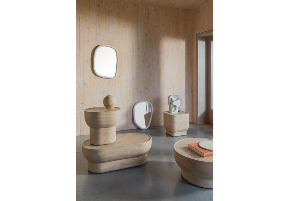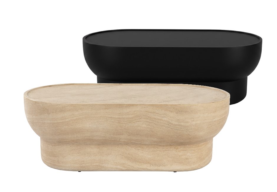 Oval table made of fiberglass with a texture of paper water or in black or ral color. Available in dimensions 100x50x35h cm.