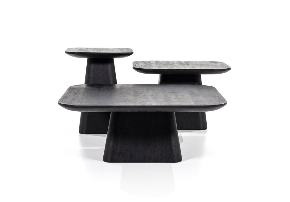 Table made of mango wood in brown and black color. Available in dimensions 80x80x32h cm.