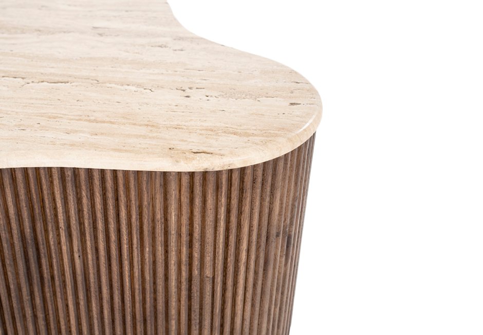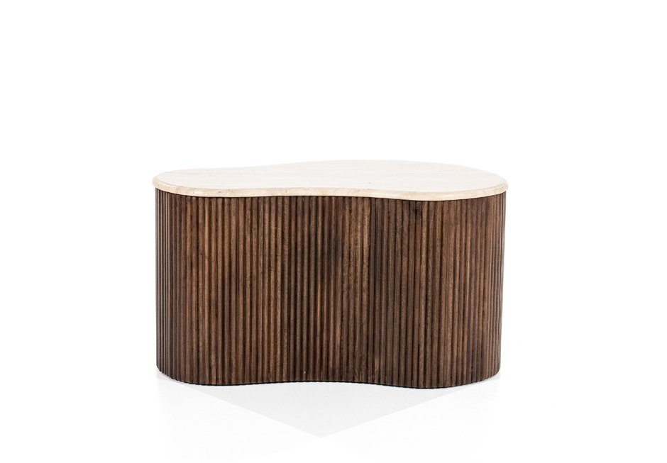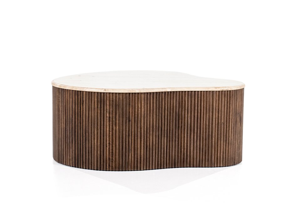 Mango coffee table with travertine surface. Available in dimensions: