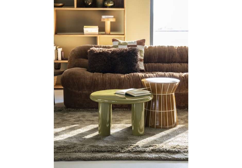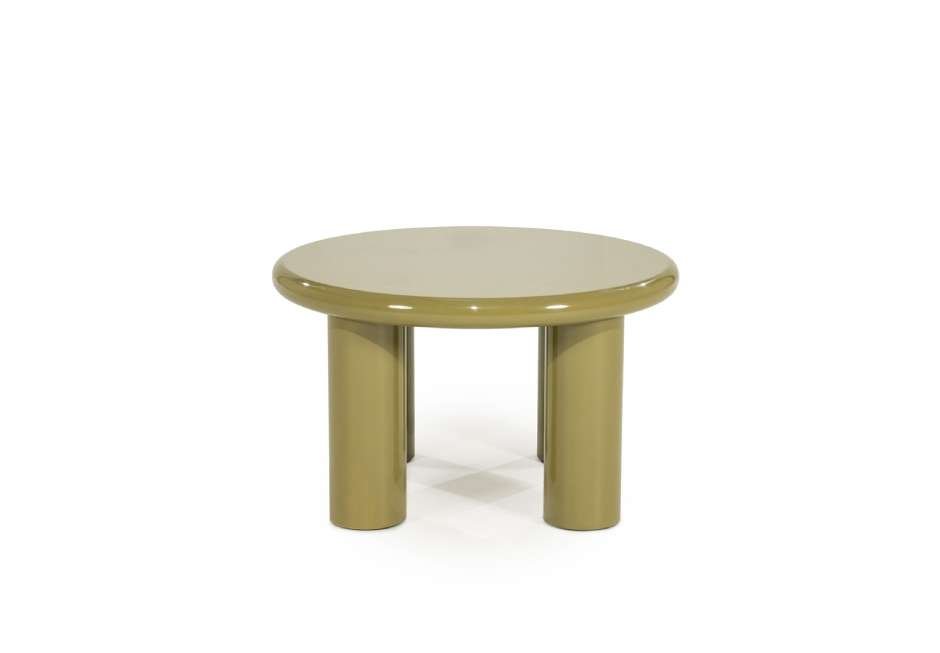 Gloss coffee table in green and beige shades.